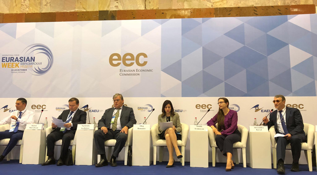 Երևանում Եվրասիական տնտեսական միության «Եվրասիական շաբաթ» ամենամյա գործնական միջոցառման շրջանակներում հոկտեմբերի 22-24-ին ԵԱՏՄ անդամ-պետությունների և միության գործընկեր-երկրների կառավարությունների ներկայացուցիչների և նախարարների, պետական կազմակերպությունների և գործարար ոլորտի ներկայացուցիչների մասնակցությամբ անցկացվել են ինտերակտիվ հարցումներ, շնորհանդեսներ, գործնական բանակցություններ, կրթական նստաշրջաններ և գործարարների համար բիզնես-դասընթացներ: