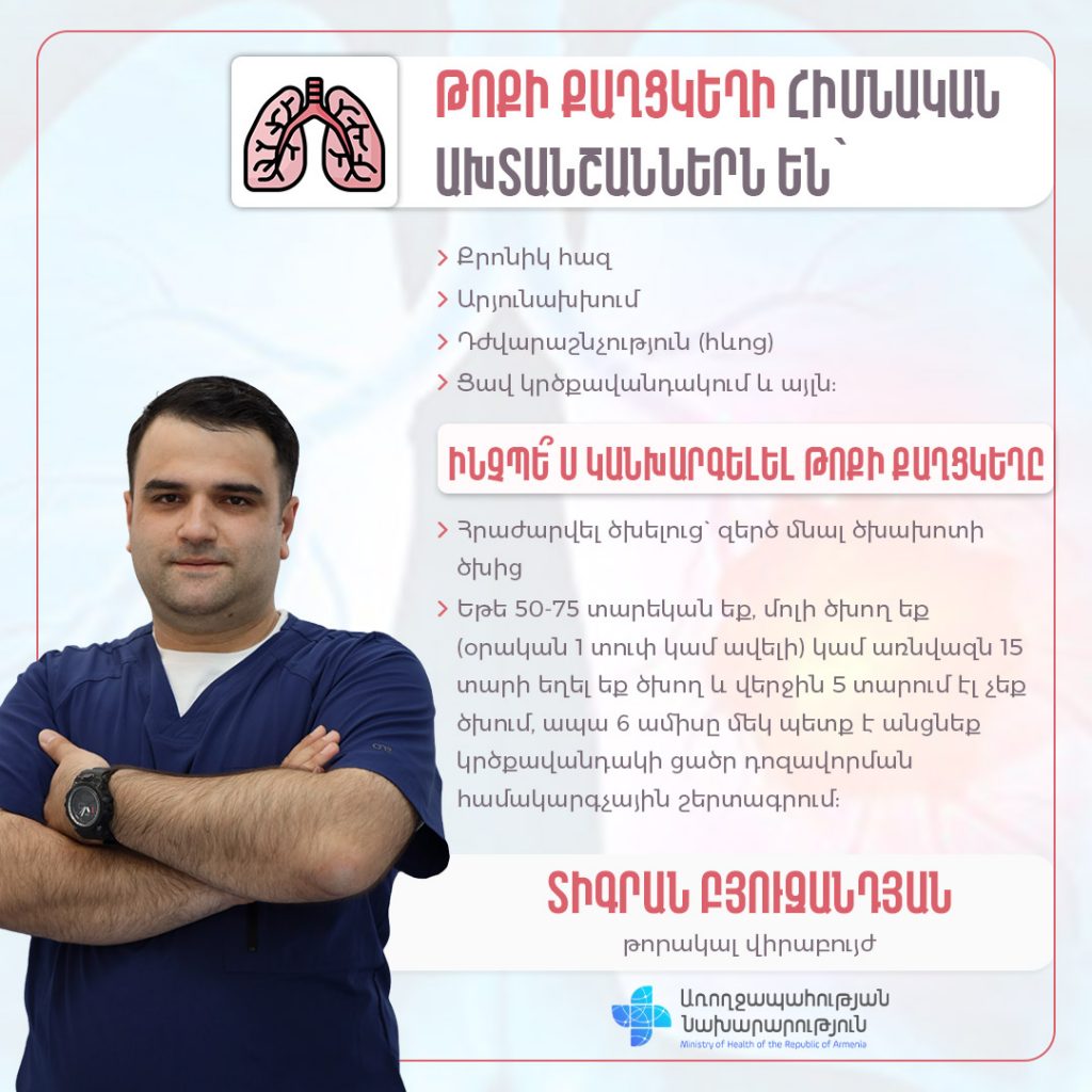 Թոքի քաղցկեղի առաջացման հիմնական ռիսկի գործոնը ծխախոտի ծուխն է
