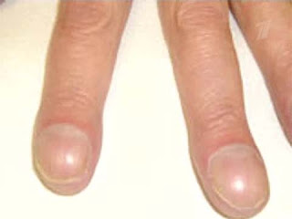 2. Ժամացույցի ապակի– ծայրամասային արյան մատակարարման խնդրի մասին է վկայում, որը կարող է առաջանալ սրտի կամ թոքերի հիվանդությունների ժամանակ: