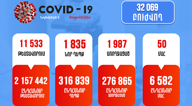 Новости (Armenia) Կորոնավիրուսային հիվանդության իրավիճակը Հայաստանում. Նոյեմբերի 5-ի` ժամը 11:00-ի դրությամբ admin пятница ноября 5, 2021 Комментариев нет COVID-19, Հայաստան Դիտումներ 695 Извините, этот техт доступен только в “Армянский”.